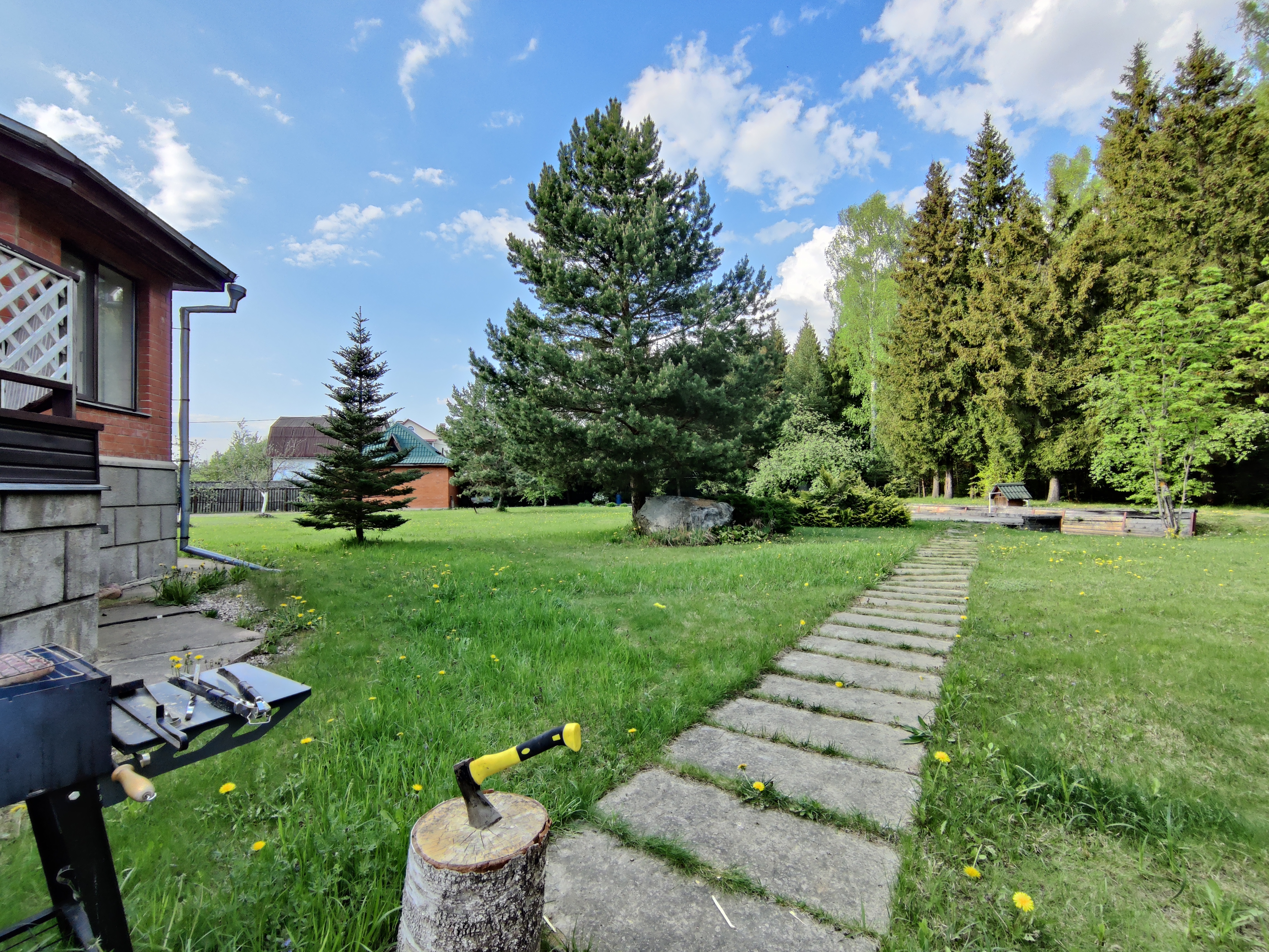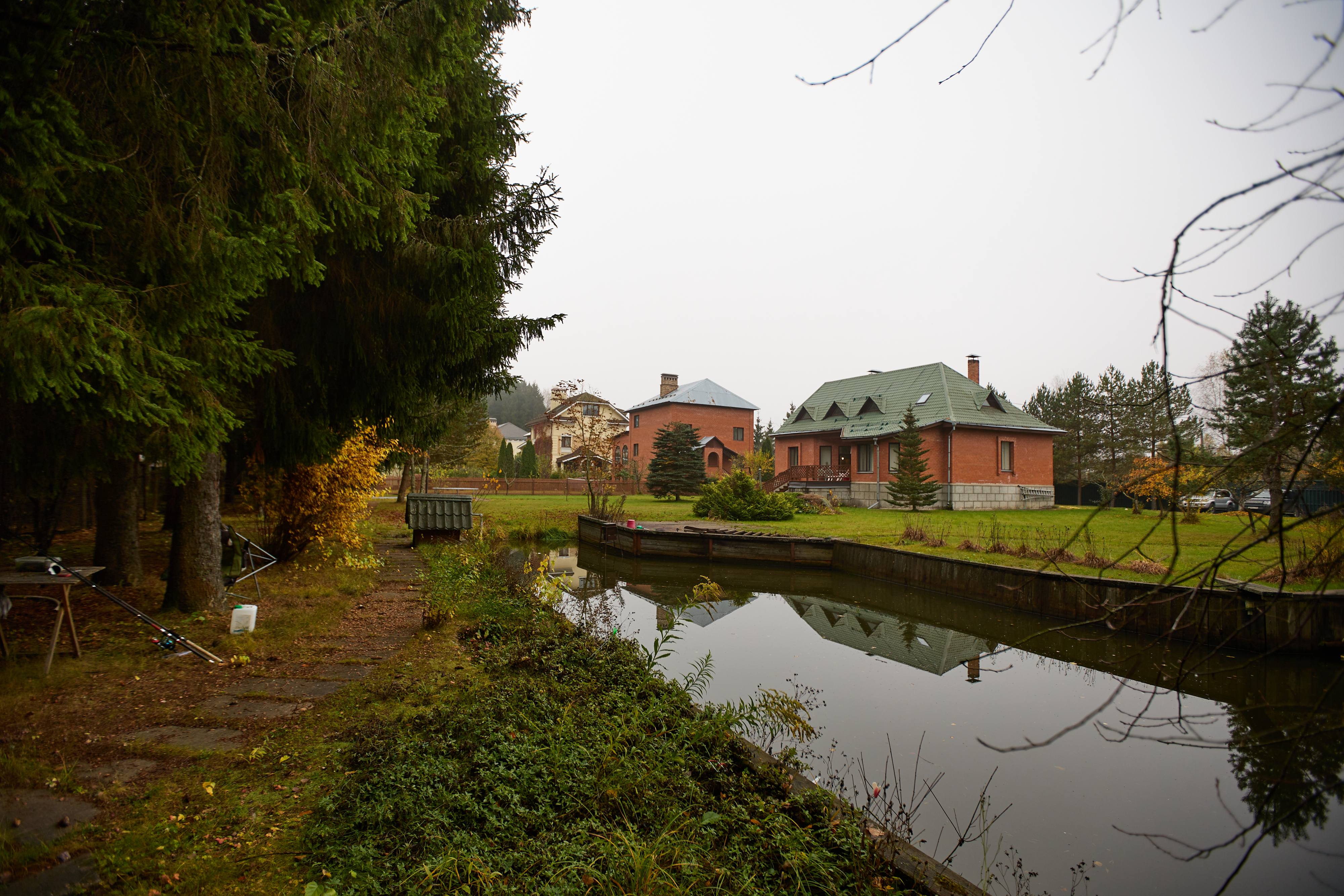 На ухоженной территории есть гриль-зона с крытым мангалом, шампурами, решетками и базовым набором дров. Также на территории есть пруд, в котором водятся белые амуры и карась. Возможность рыбалки обсуждается отдельно.