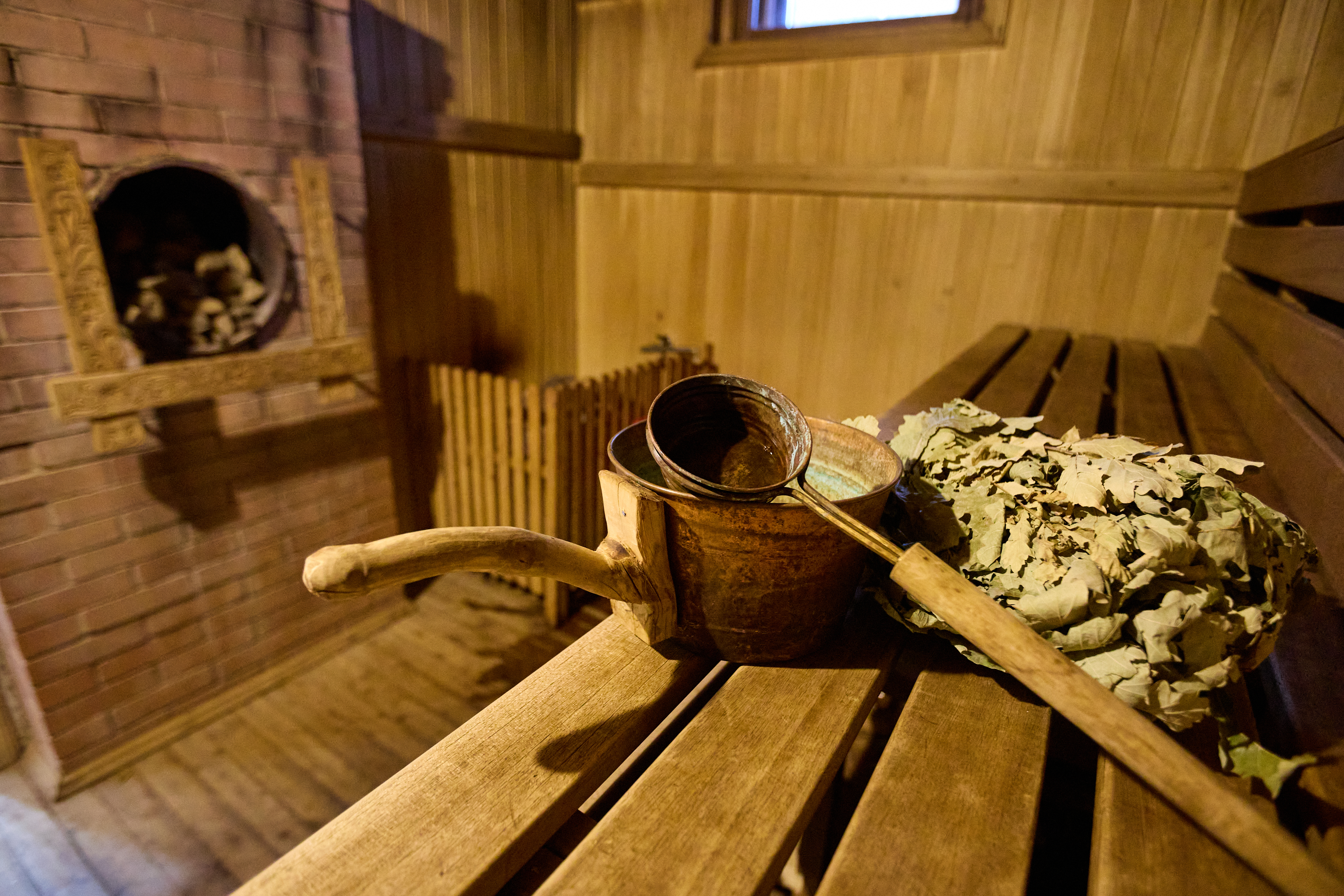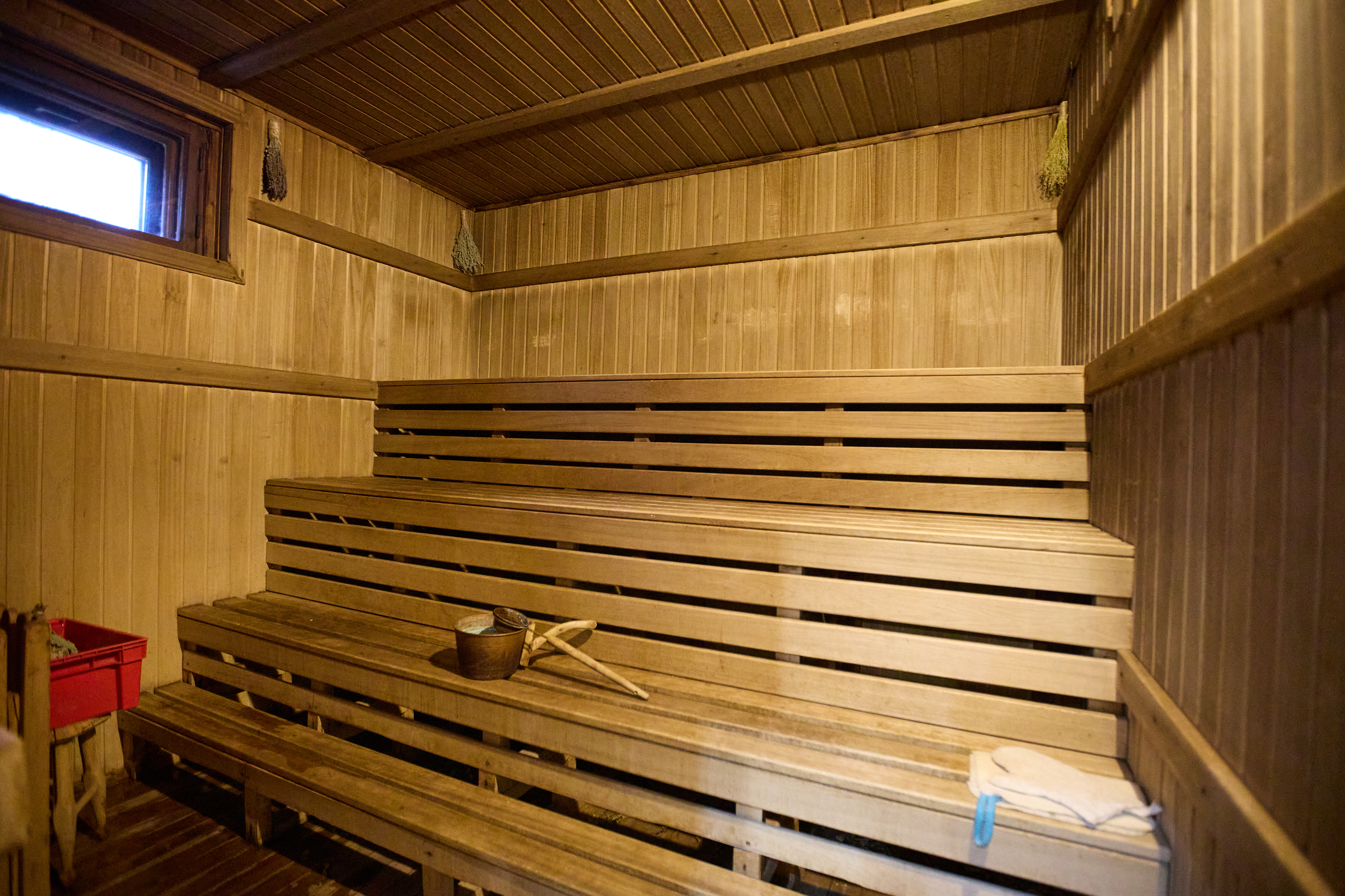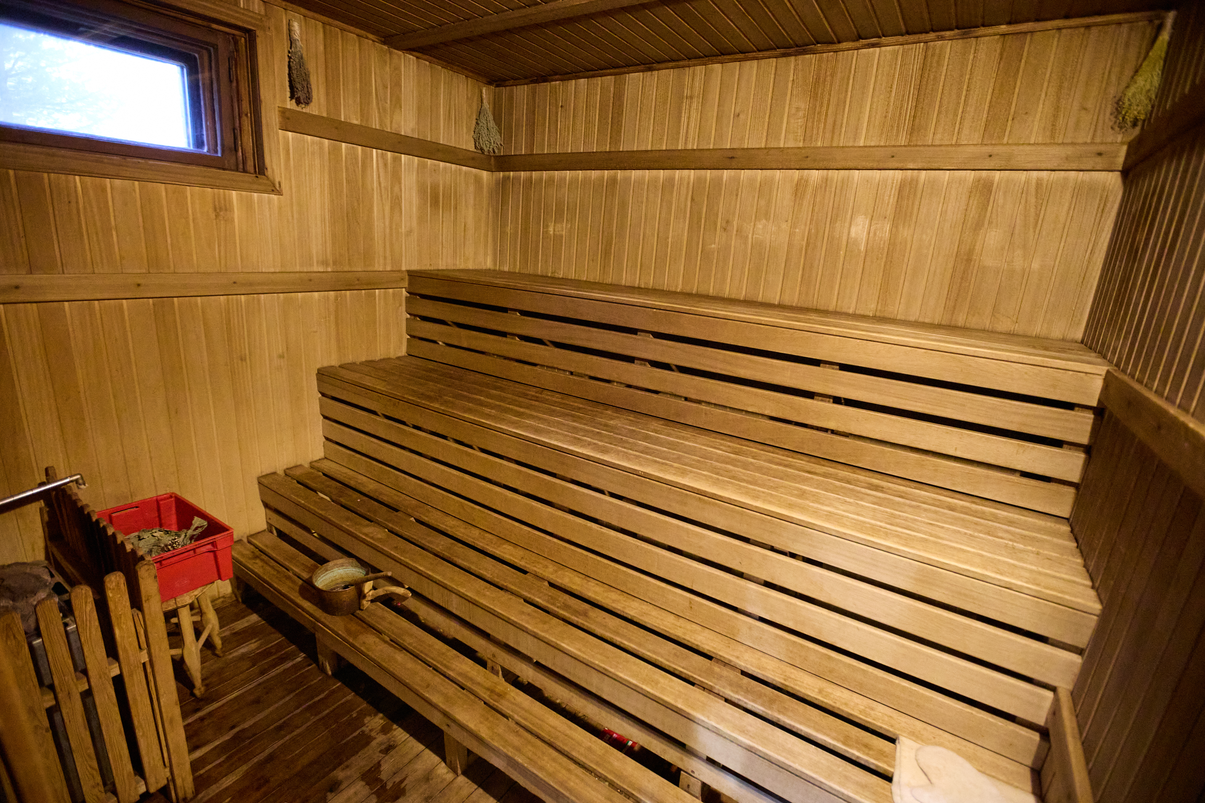 Баня (сауна для температуры и каменная печь для влажности) длительностью 4 часа в сутки. Один березовый или дубовый веник на выбор включен в стоимость. Мы используем качественную химию для очистки сауны после каждого парения.