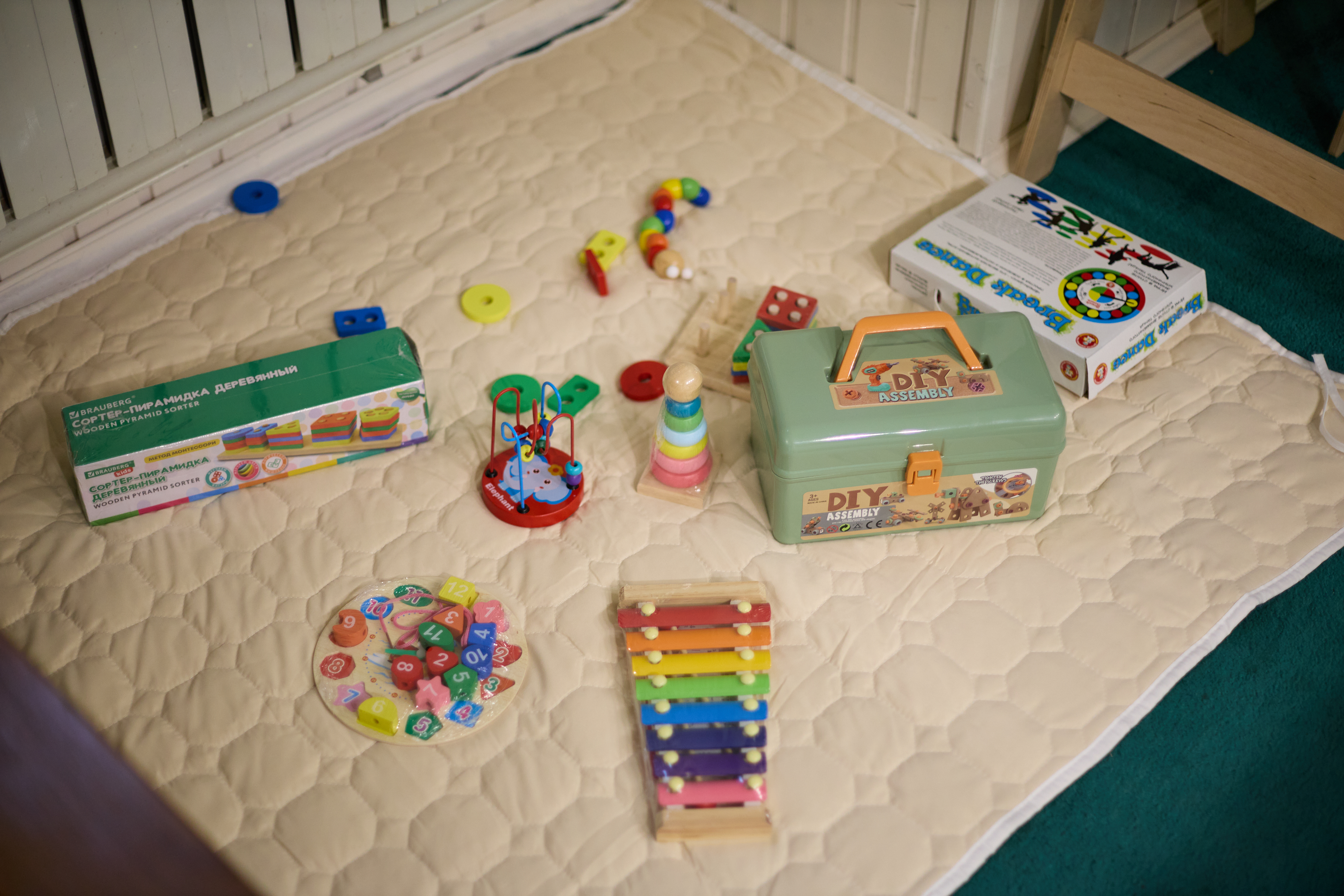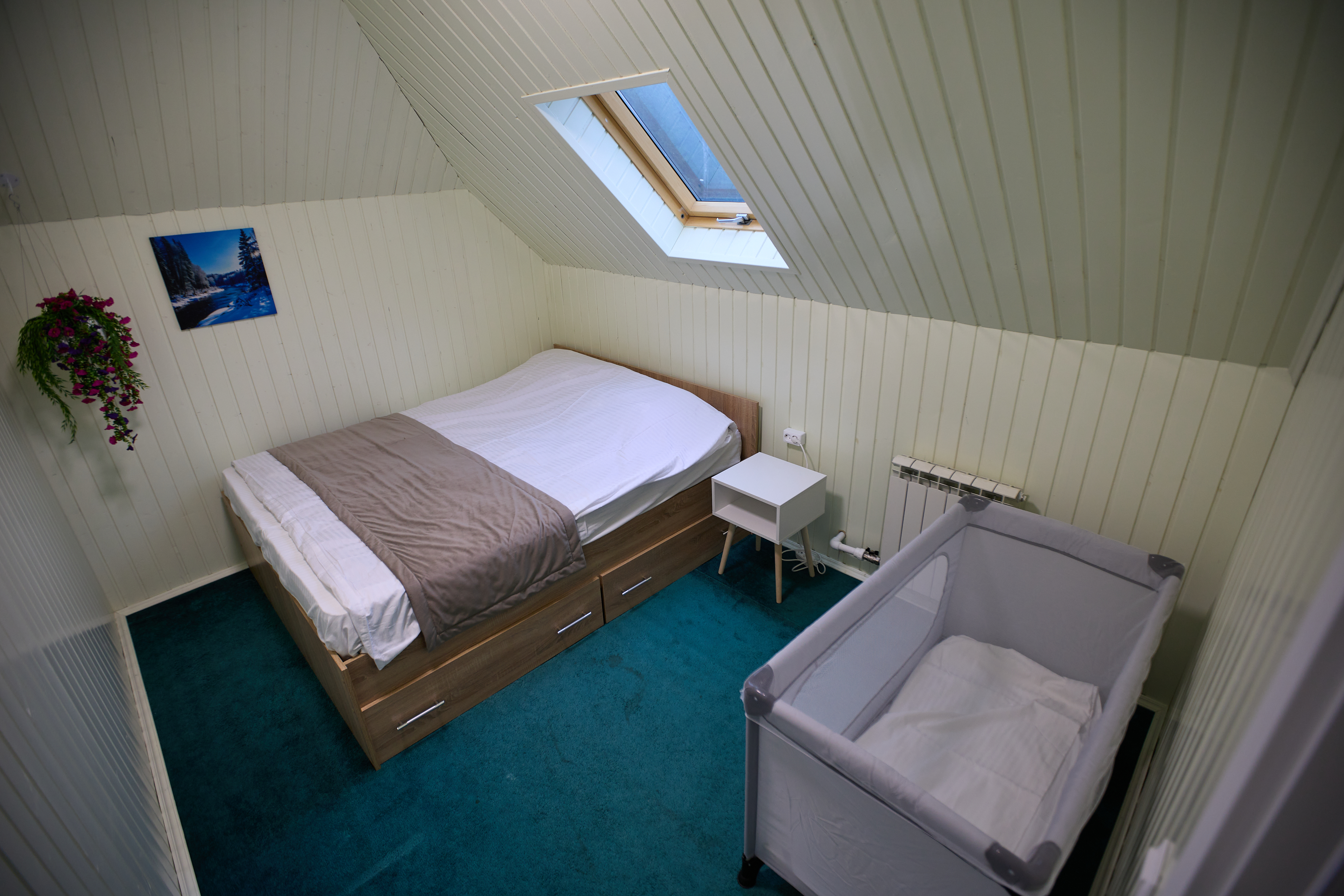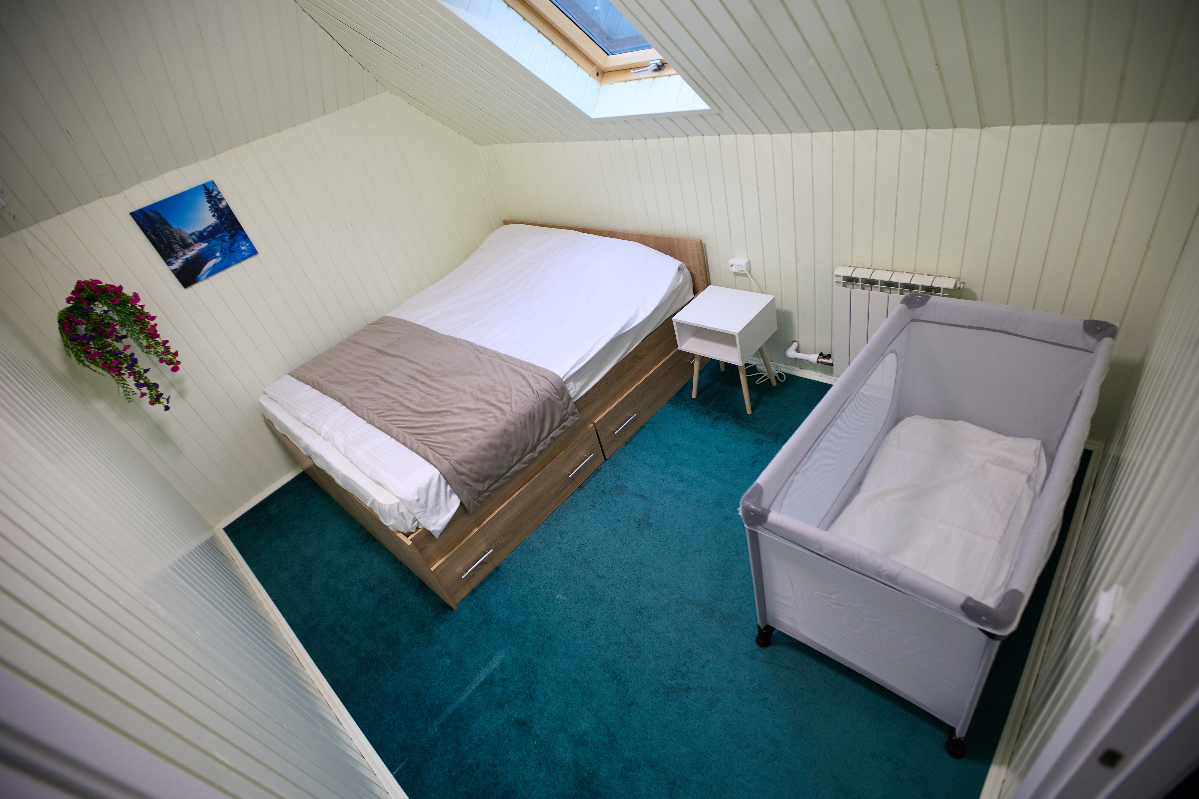 Специально для малышей мы приобрели две детских манеж-кровати (длиной 125 см), чтобы малышей можно было уложить поспать.