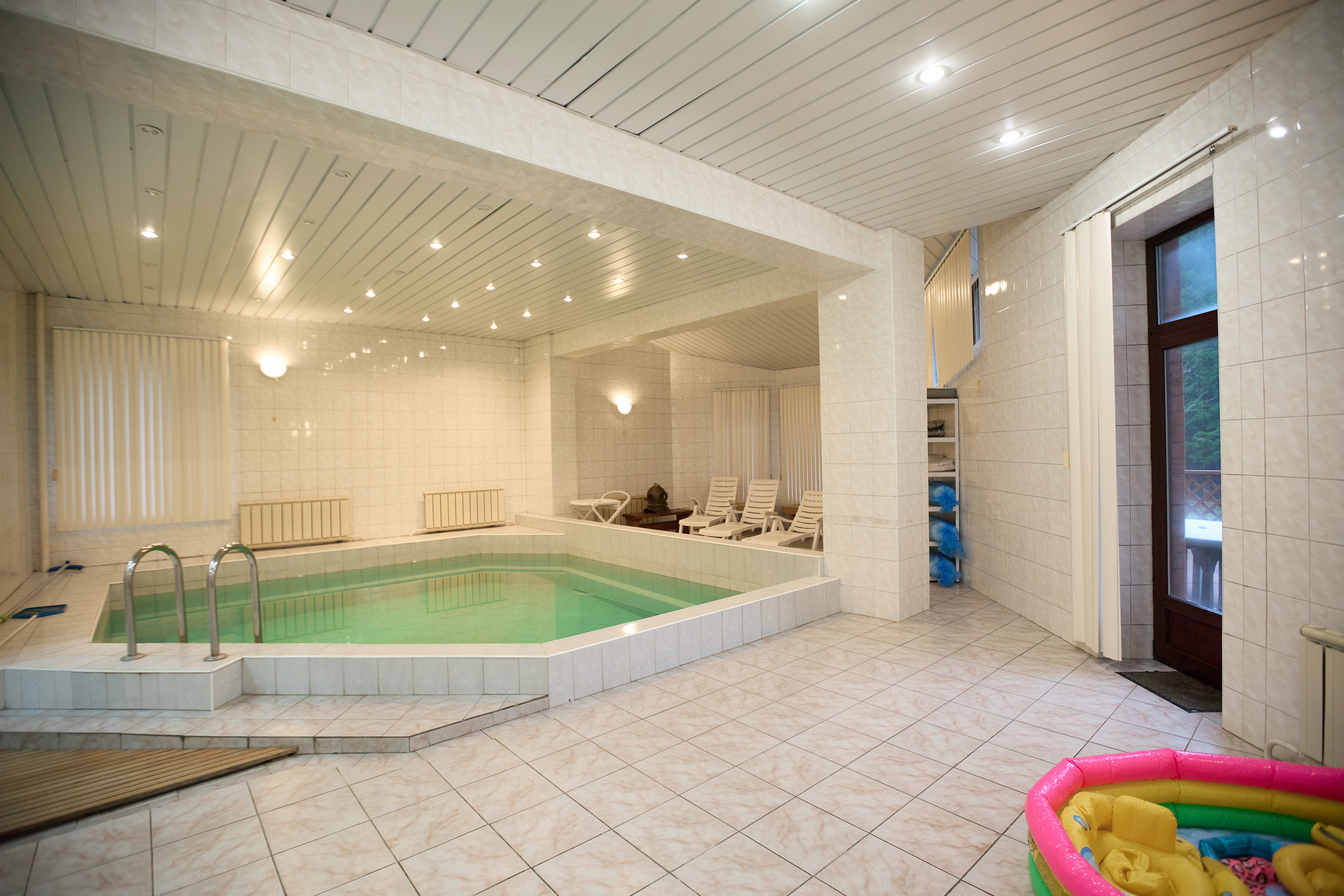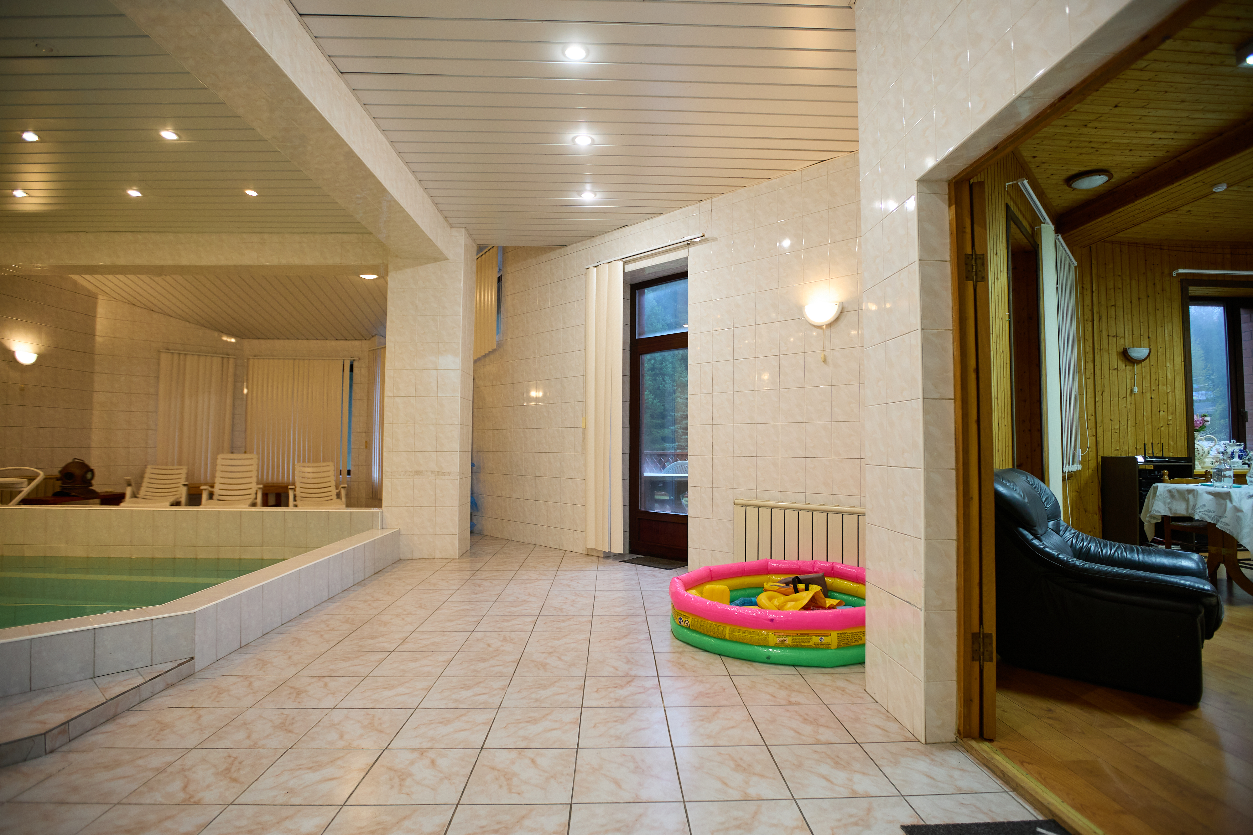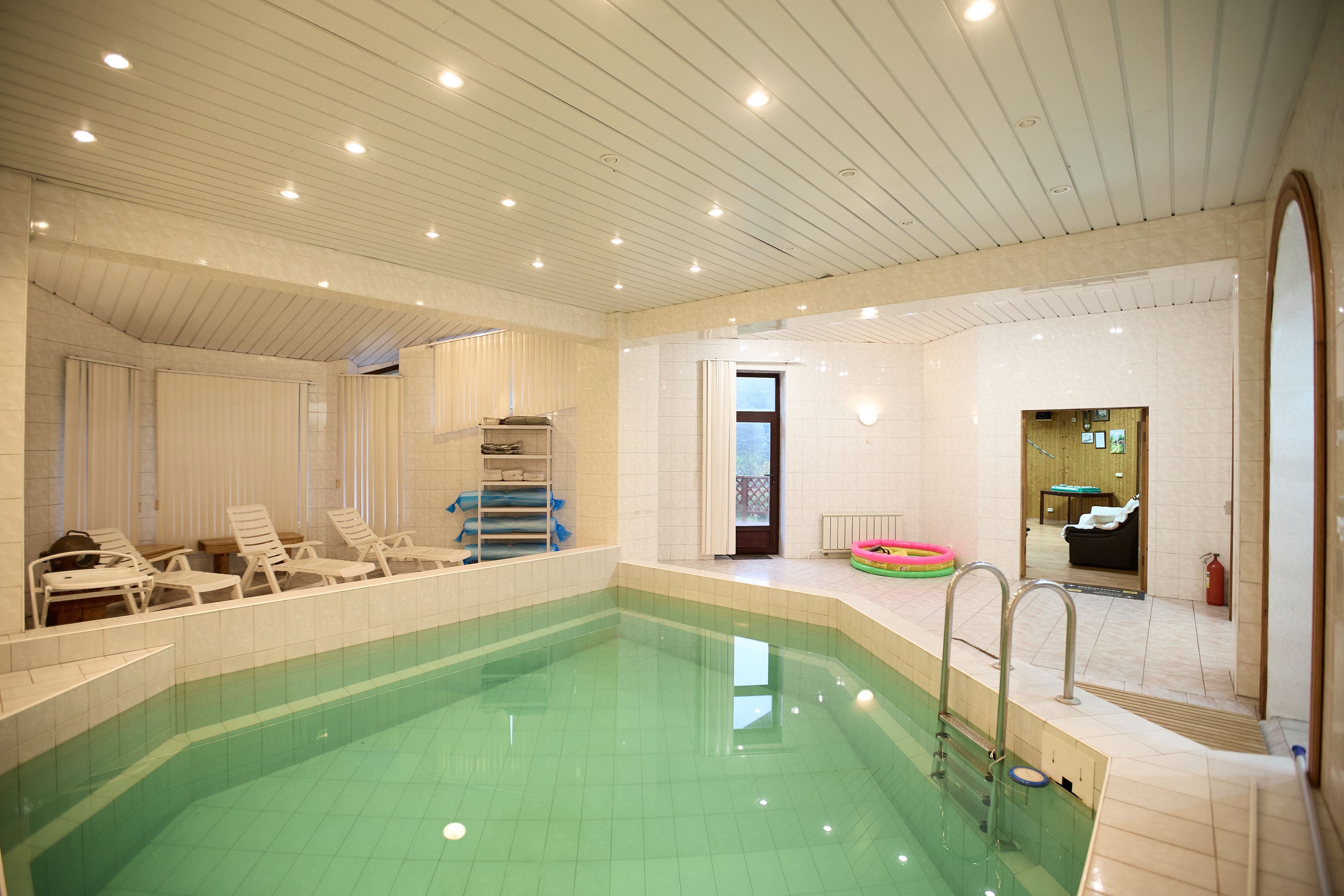 Пока дети заняты игрой, вы можете расслабиться и насладиться великолепной баней и чистым теплым бассейном (30°С)